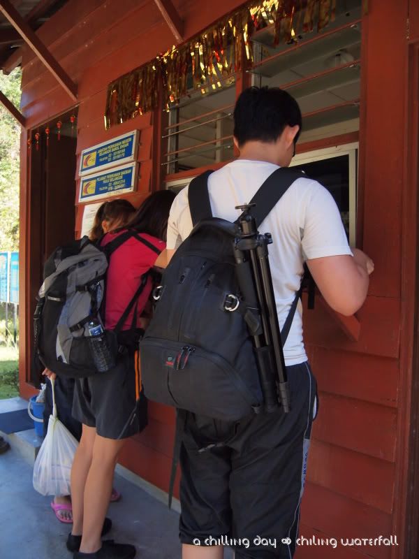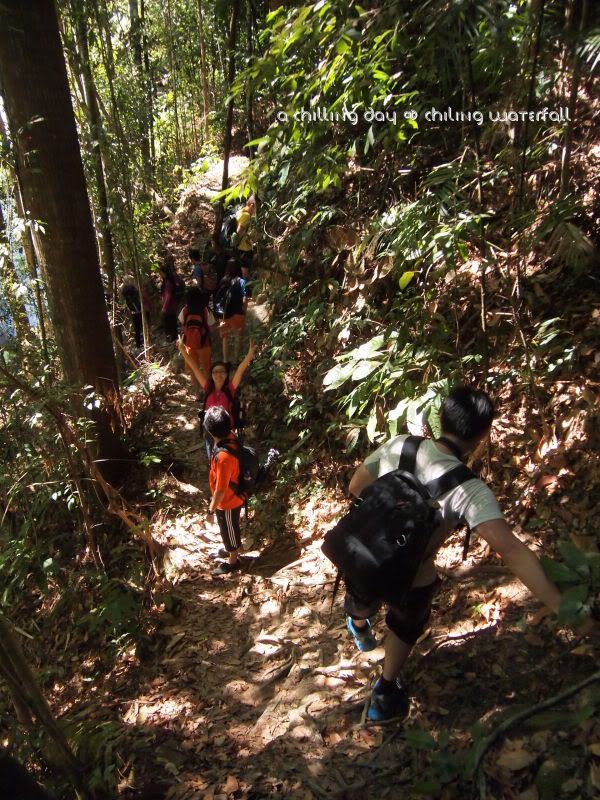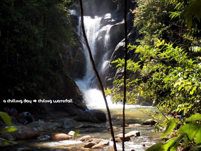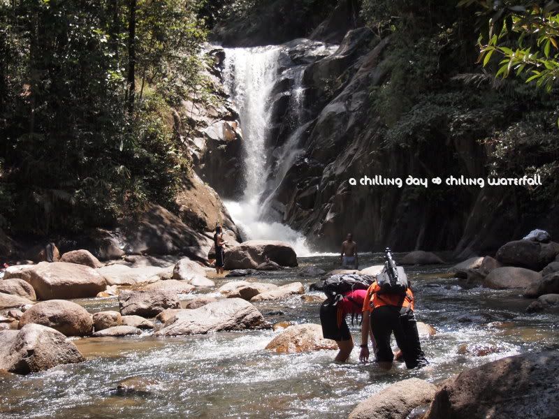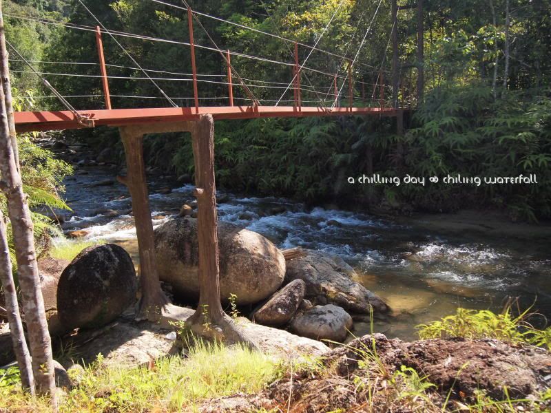 Sg Chiling,“听说”实在 Fraser Hill附近。要到达瀑布,其实还靠跨越六条小溪。它和KL的距离,甚至比距离 KL 蛮远的Rawang还要远。算是在 Kota Kubu Bharu吧。从这里的大街去到山里,还要大概15到20分钟的车程。所以,可以想象到底有多远吧。我只记得我一路都在睡啊睡。睡到差不多接近大街了我才醒来。毕竟从KL到这里的路程是在太远太无聊了吧。我们到达大街后,都差不多早上9点咯。由于Regional是这里的“地头蛇”,所以他带我们来到一间还算蛮出名的摊子-潮记海鲜豆腐鱼餐馆。据说,这里出名的是他们的豆腐鱼哦。不过,早餐吃得那么丰盛好像有点可怕。所以,我们最后也只叫了福建炒面和一些咸菜猪肉卤蛋而已。这家店的师傅是真的有一手的哦。东西都很好吃。很可惜当时没有把相机带在身边。下次有机会再拍写照片会来。呵呵。吃完早餐,我们又再开始我们的路程咯。。(好像有点吃饱就要去逛街的感觉哦,连我自己都不相信,但是房东他们一再的说,这只是个很轻松的郊游而已,不用太放在心上。。我真的以为是这样。。)