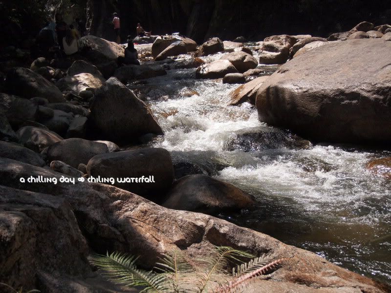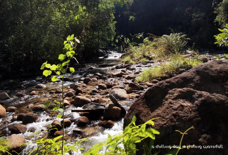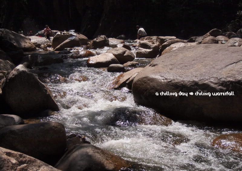 我们在这里待了差不多有两个小时。本来已开始只有下半身湿透的我们,因为不甘心而继续玩水(毕竟好像没有什么玩到嘛),所以到最后都大家全身湿透了。哈哈。说真的,也好久没有这样玩水咯。上一次应该是在热浪岛吧。山水的清凉是沁入心扉的。和海滩的水是很大不同的。尽管外面的太阳是多么的猛烈,根本都没有办法改变这里的水温。刚刚下水的我们,还得用猜拳的方式来决定谁先下去呢。哈哈。嘻嘻哈哈,打打闹闹就这样过了一个上午。
