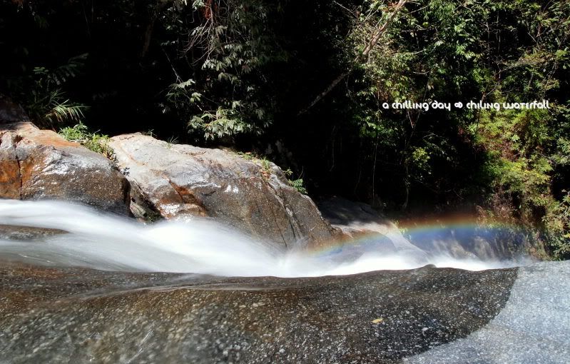 就是这个啦。瀑布边的彩虹!瀑布喷出来的水花,经过太阳的折射,竟然在一旁形成美丽的彩虹。原来彩虹不只出现在风雨过后,现在连瀑布旁都有咯。呵呵。经过房东的一番调教,我也拍得到完整的彩虹。哈哈,真开心!